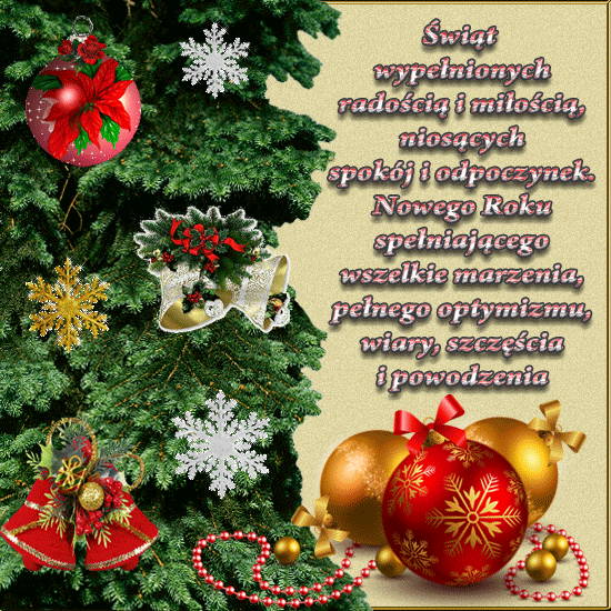 Niech Wasze święta będą pełne zapachu choinki, kolędowych melodii i świętej zadumy nad białym opłatkiem a Nowy Rok pomyślny i szczęśliwy.